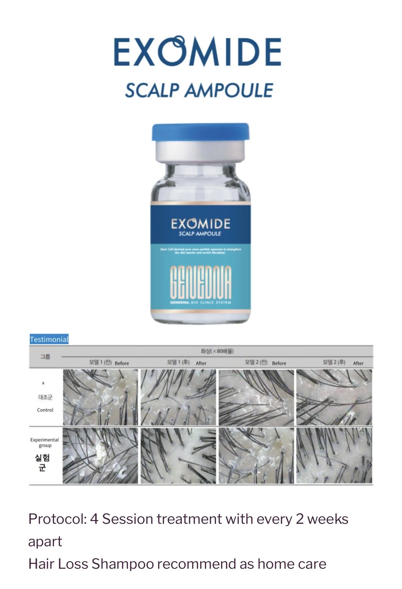 This revolutionary treatment contains 10 billion stem cell-derived Exosomes, carrying growth factors, amino acids, peptides, ginkgo leaf extract and ecklonia cava extract to target hair growth.